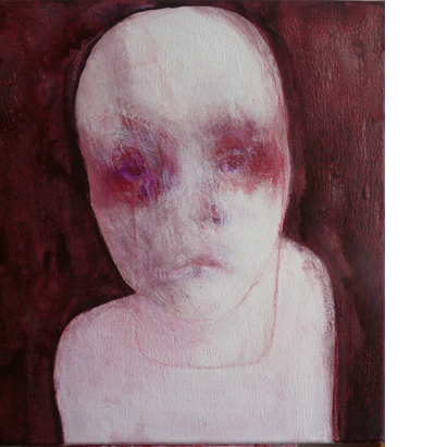 conny stark - ansichtenbei den farbigen arbeiten (acryl und ölkreide auf leinwand) verfolgte ich den aspekt wie sich schmerz in ein gesicht einbrennt und dieses entstellt.
